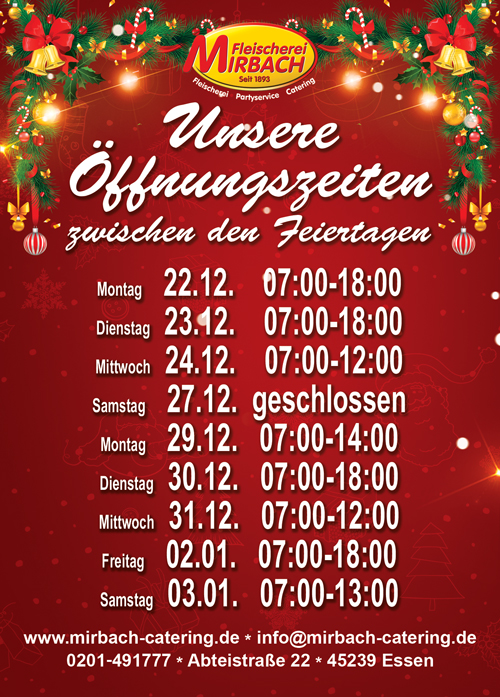 Öffnungszeiten zwischen den Feiertagen